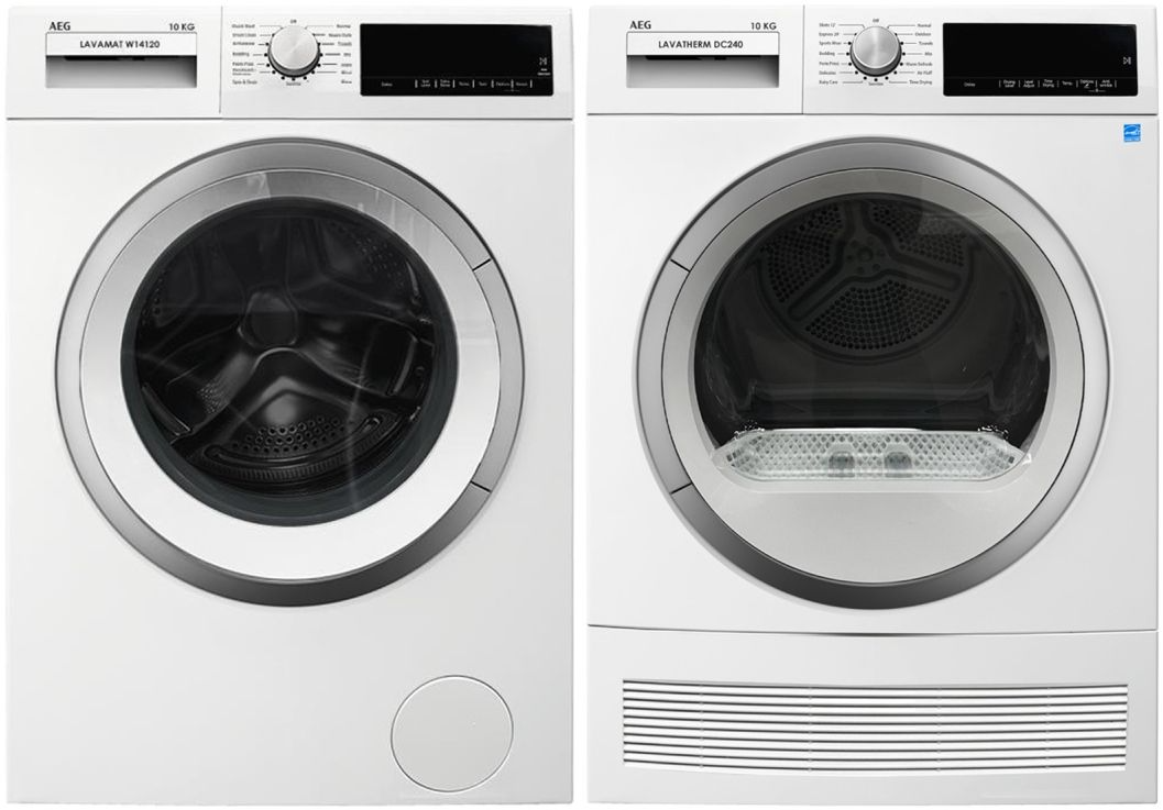 AEG White Front Load Laundry Pair with a 24'' compact front load Washer and a 24'' ventless electric dryer.Read More