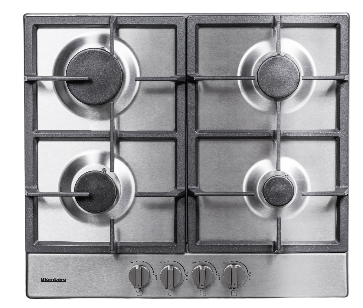Blomberg® 24" Gas Cooktop, Four Gas Burners, Sealed Burner, Gas Safety Device, 15,000 BTU Power Burner with Simmering, Cast Iron Pan Supports, Integrated Ignition, Front Knob Control without Illumination, Griddle (Optional Accessory), High Grade Stainless Steel.Read More