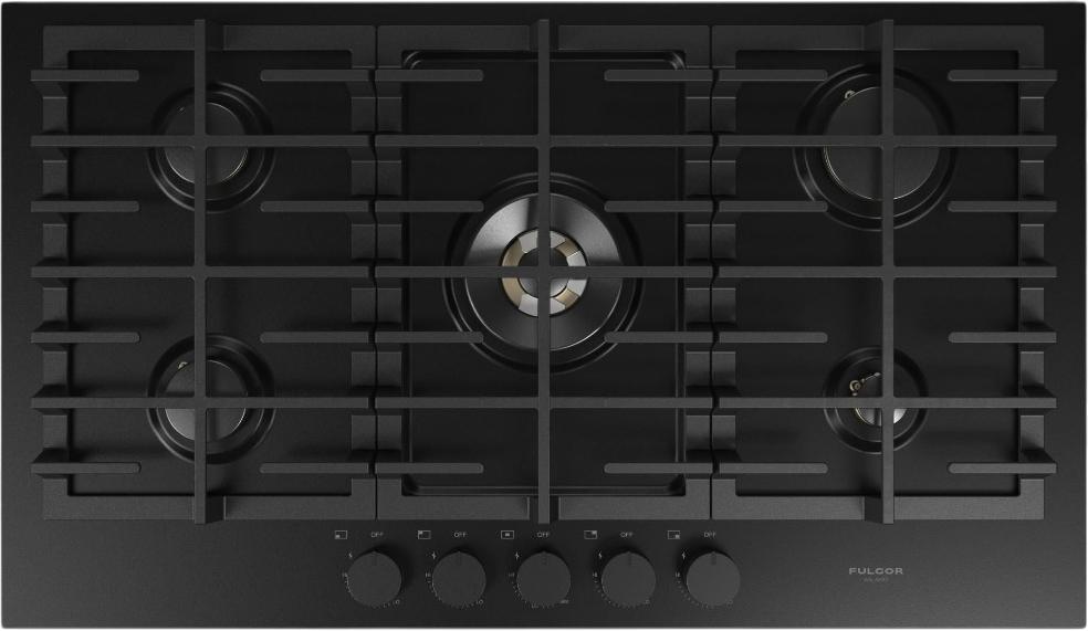 5 gas burners with 1 dual-flame burner (Center)
