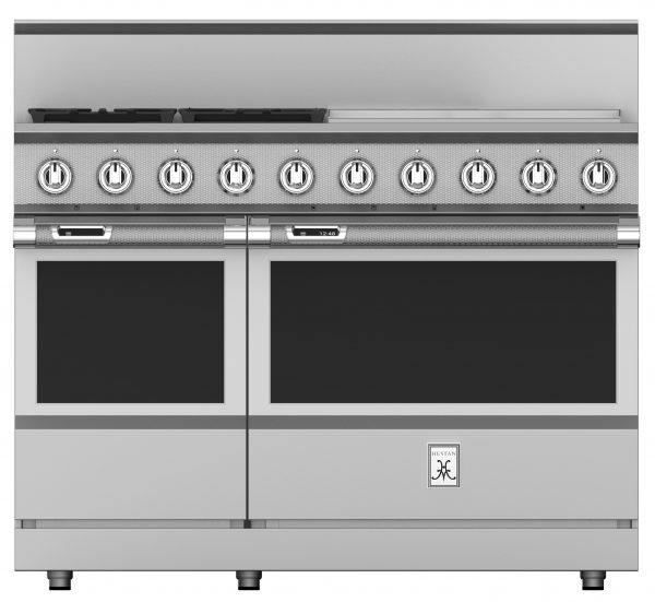 The Hestan 48” range provides searing culinary power with a sealed burner system delivering exceptional temperature control for culinary power up to 23,000 BTUs and as low as 500 BTUs. The 24” commercial-grade stainless steel gas griddle makes breakfast a cinch with superior heating and a thermostat for precise temperature control. The high-performance oven features exclusive PureVection™ technology, which electronically controls multiple heating convection systems, to optimize baking, broiling, roasting and convection baking. And, the MarquiseDisplay™ gives you a chef-friendly digital display – conveniently inset right in the oven handle.Read More