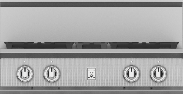 Maximize your cooking area with the Hestan 30” rangetop. This four-burner model brings exceptional culinary power to smaller spaces – not to mention stunning style. The dual-flow burner system allows for a robust range of heat control, from a searing 23,000 BTU flame to a continuous gentle simmer of 500 BTUs. Signature continuous grates allow for easy cookware maneuverability. Backlit knobs bring elegant form to their precision function.Read More