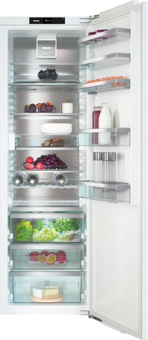 More volume: Miele Refrigeration Appliances with ComfortSize provide ample space to store your groceries. The larger size means that you can easily slide in a baking tray above the PerfectFresh Pro or PerfectFresh Active compartment. This leaves room to accommodate even bulky items with ease.