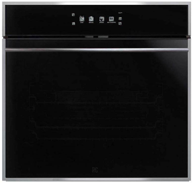 Porter & Charles 30" Black Glass/Stainless Steel Trim Single Built-In Electric Wall Oven with power ventilated glazed door panels. It features removable door and glass panels for easy cleaning and full colour LCD touch control.Read More