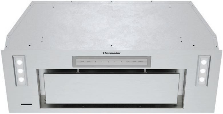 Thermador® Masterpiece® Series 30" Stainless Steel Insert Range Hood with Powerfully quiet® ventilation systems is equipped with the Thermador Connected Experience by Home Connect™.Read More