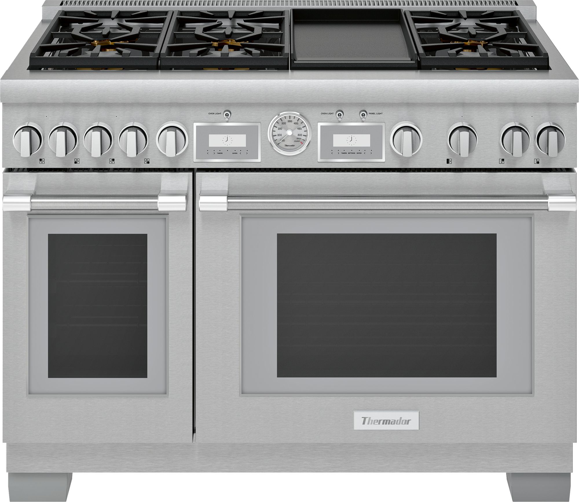 Six rack levels in each oven for multiple item cooking